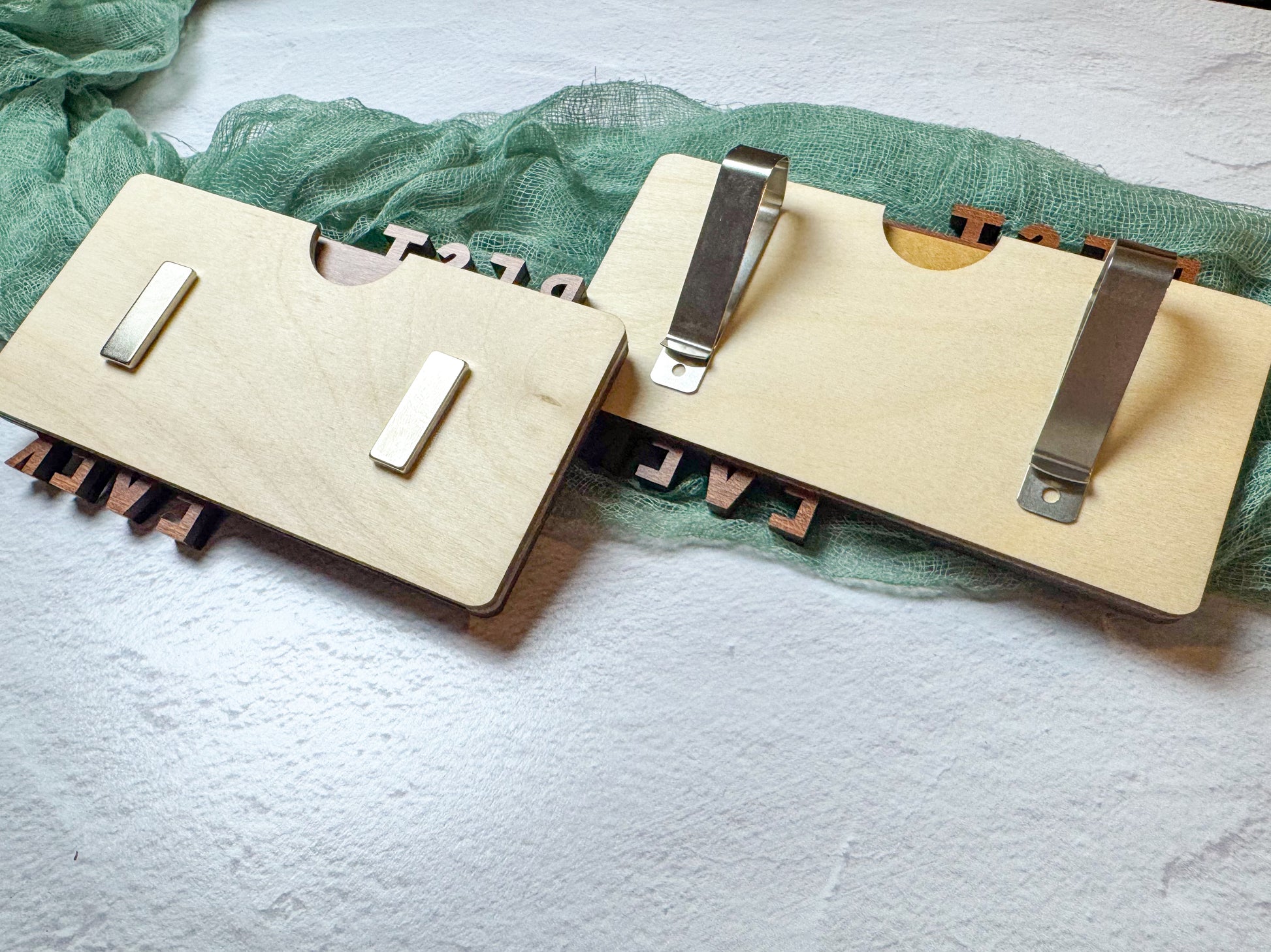 Crafted from a clean combination of wood and acrylic, this frame has a modern, minimalist feel that fits seamlessly into any space—whether it's stuck to the fridge with the magnet-back option, or riding along with him in the car thanks to the visor clip version.